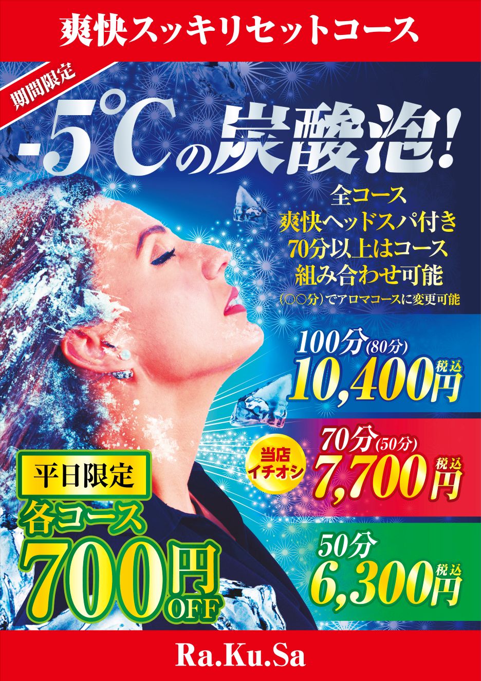 ①大人気「-5℃炭酸泡爽快スッキリコース♪」