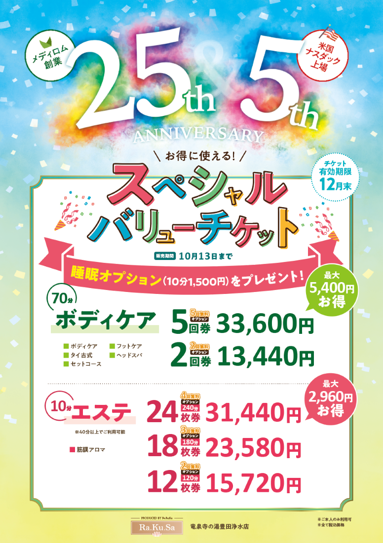 リラクゼーション、Ra.Ku.Saより期間限定キャンペーンのご案内です♪