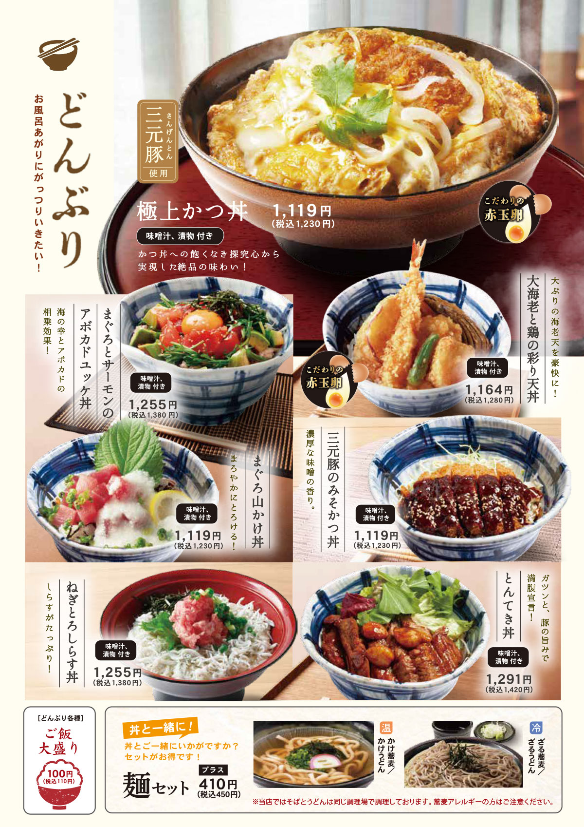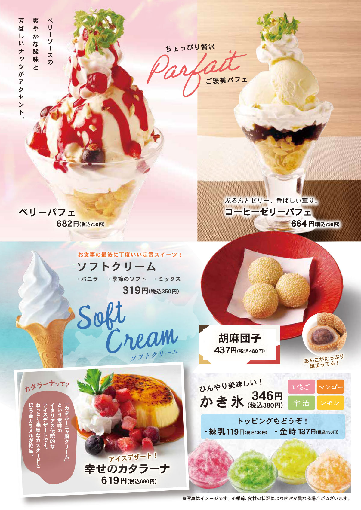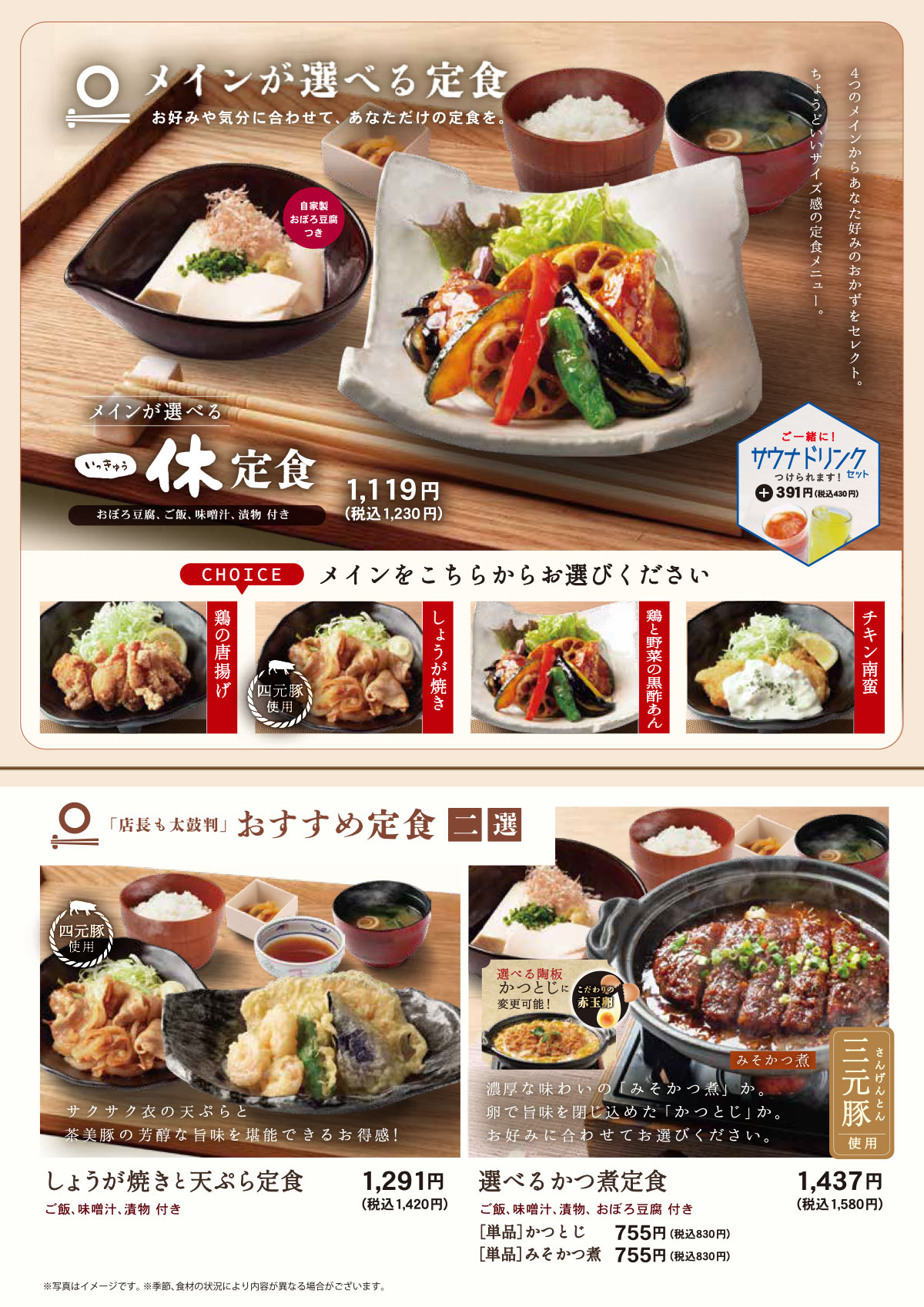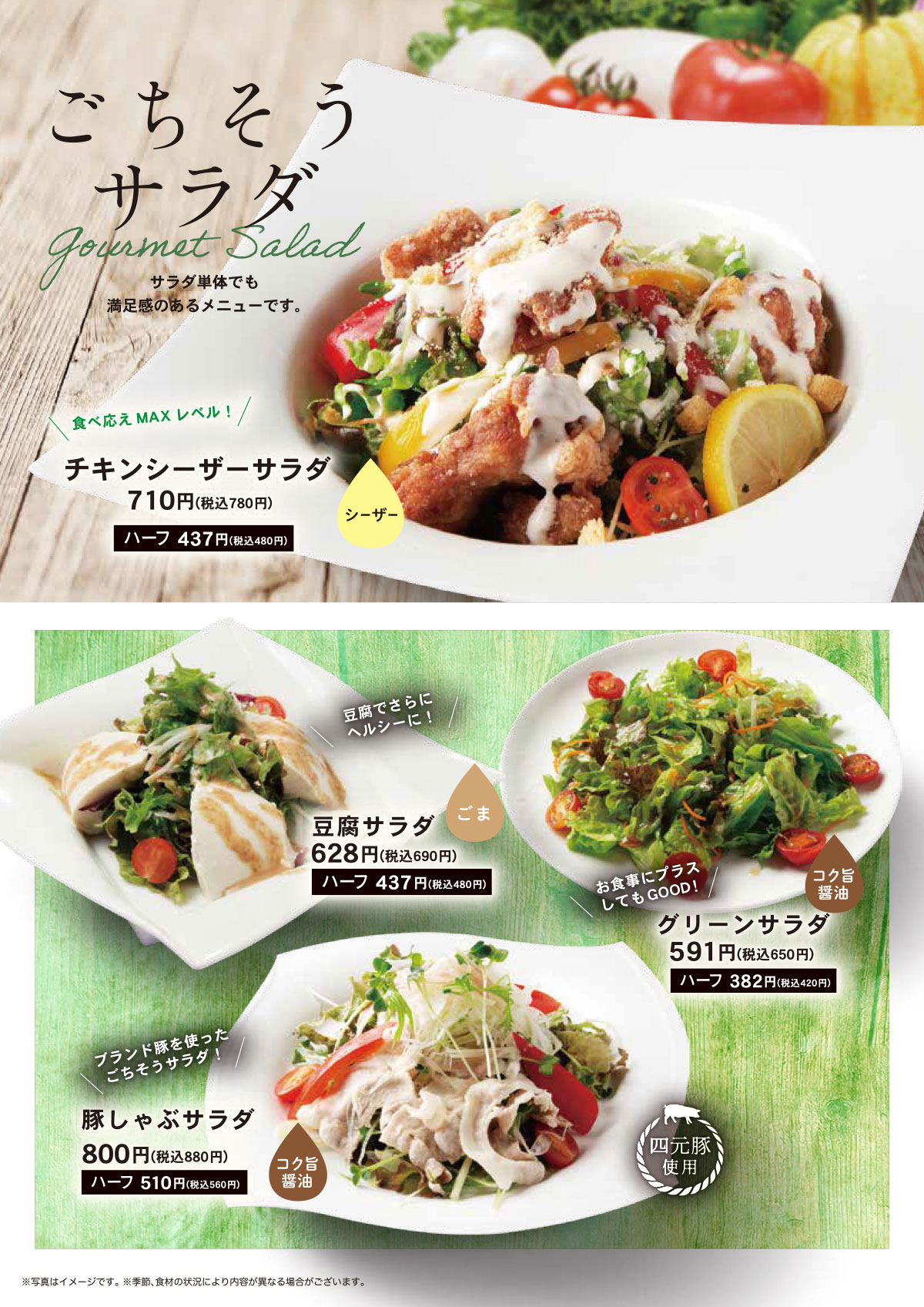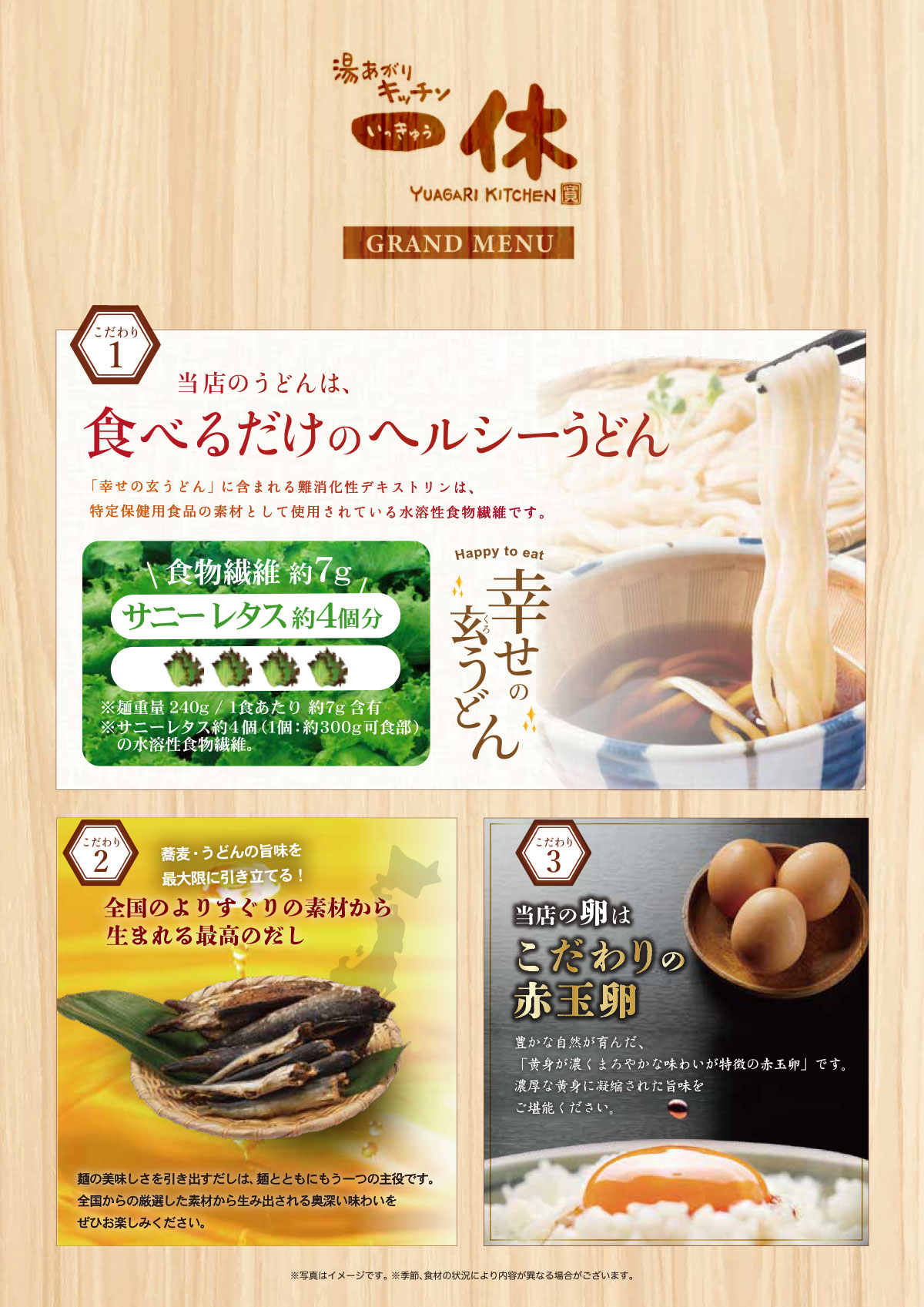 食材にこだわった自慢のお料理をはじめ、麺類・軽食など豊富なメニューを取り揃えています。