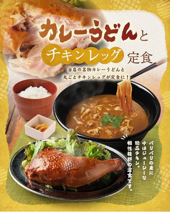 カレーうどんとチキンレッグ定食🍗をご紹介!