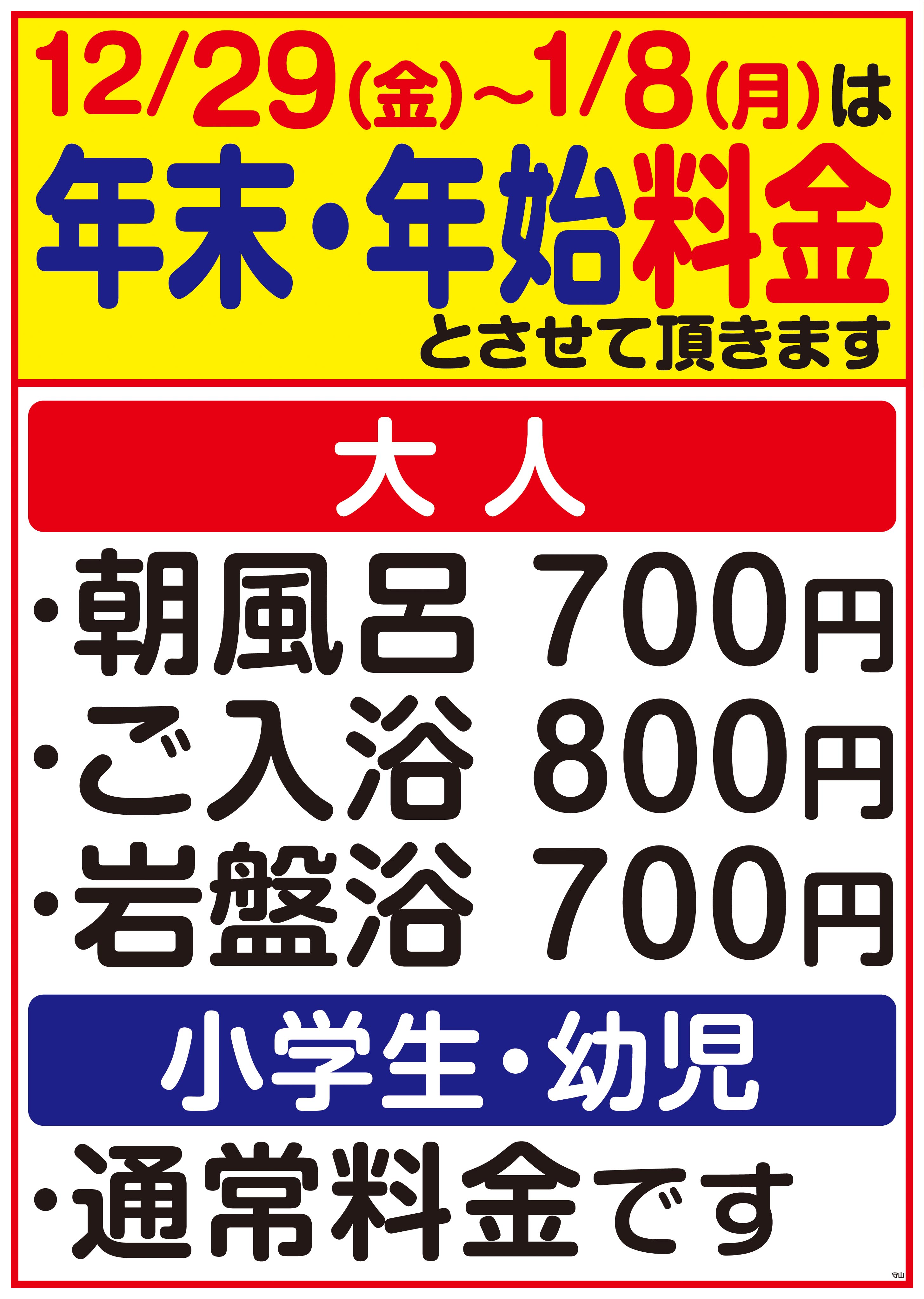 お知らせ Information 2024年1月22日 【ヨガレッスンスケジュール】 【2月のヨガレッスンのスケジュール】 こちらをご確認の上ご参加くださいませ。 ※参加費500円 ※岩盤浴ご利用の方限定となります 2024年1月22日 \1/22㈪は「カレーの日」/ オリエンタルカレー×竜泉寺の湯 コラボグッズ 期間限定販売✨ サウナ後の研ぎ澄まされた味覚を刺激する「TOTONOIマースカレー」や白色・黄色のサウナハットは要チェックです✨ ▼販売場所▼ 1 […] 2023年12月21日 【年末年始営業のご案内】 【年末年始営業のご案内】 2023年12/29(金)〜2024年1/8(月) までの期間中『特別料金』とさせていただきます。 ・大人入館料 800円 ・朝風呂 700円 ・フォレストヴィラ利用 700円 ※小学生・幼児は […] 2023年12月17日 【ヨガレッスンスケジュール】 【1月のヨガレッスンのスケジュール】 こちらをご確認の上ご参加くださいませ。 ※参加費500円 ※岩盤浴ご利用の方限定となります 2023年11月19日 【ヨガレッスンスケジュール】 【12月のヨガレッスンのスケジュール】 こちらをご確認の上ご参加くださいませ。 ※参加費500円 ※岩盤浴ご利用の方限定となります « 先頭«...1112131415...2030...»最後 » Follow us