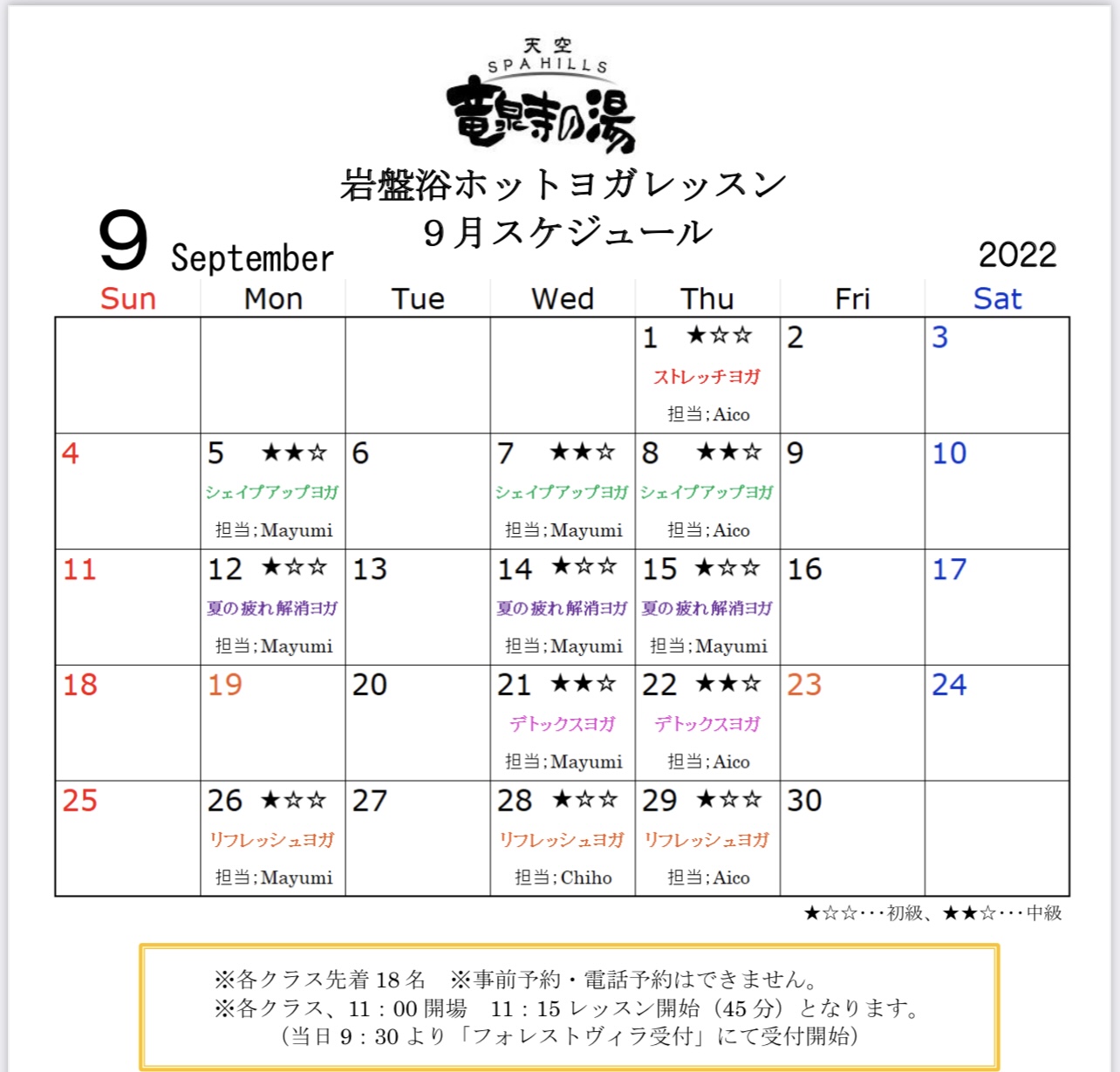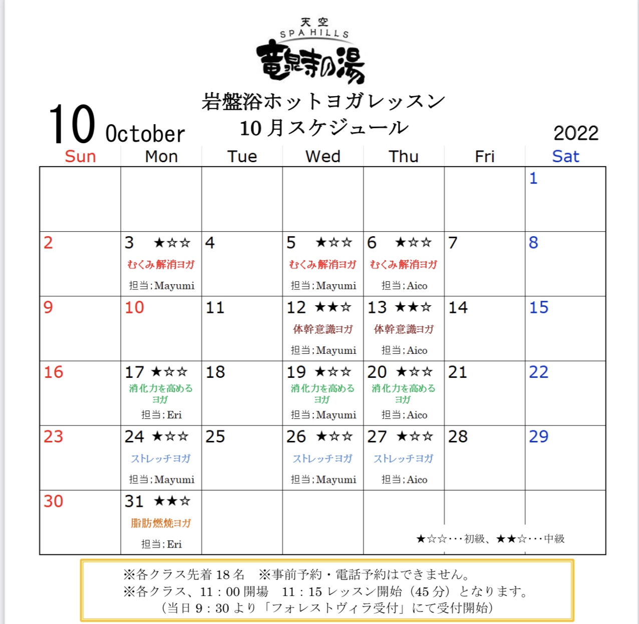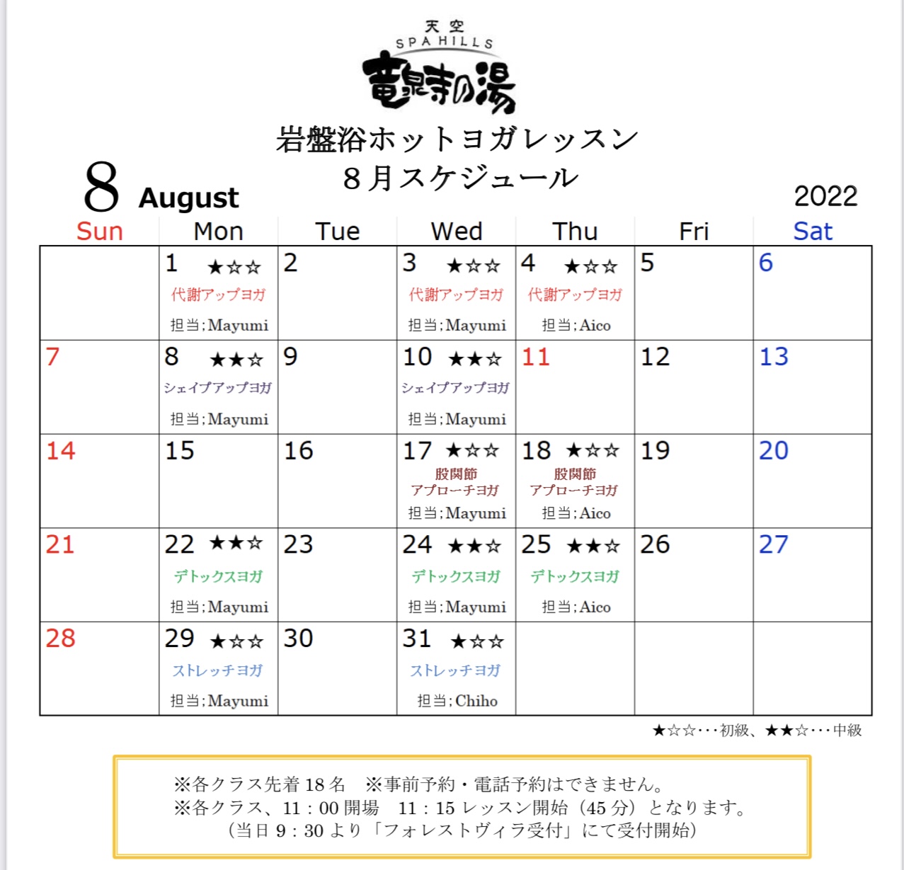 お知らせ Information 2022年9月27日 【ヨガレッスンスケジュール】 【10月のヨガレッスンのスケジュール】 こちらをご確認の上ご参加くださいませ。 2022年8月17日 【ヨガレッスンスケジュール】 【9月のヨガレッスンのスケジュール】 こちらをご確認の上ご参加くださいませ。 2022年7月22日 【名古屋プレミアム商品券】 名古屋プレミアム商品券が当店で使えるようになりました! ※自動精算機での対応は出来ません すべてレジ対応となります。 ・入館料には使用できません。 ・紙クーポンのみ使用できます。 (電子クーポンは対応しておりませ […] 2022年7月20日 【ヨガレッスンスケジュール】 【8月のヨガレッスンのスケジュール】 こちらをご確認の上ご参加くださいませ。 2022年7月1日 【公式アプリアップデートのお知らせ】 一部システム修正のため、公式アプリのアップデートを行いました。 お手数ですが、「竜泉寺の湯アプリ」の更新を行っていただきますよう、ご協力をお願いいたします。 2022年7月1日(金)以降に、アップデートを行っていない場合 […] « 先頭«...10...1920212223...30...»最後 » Follow us
