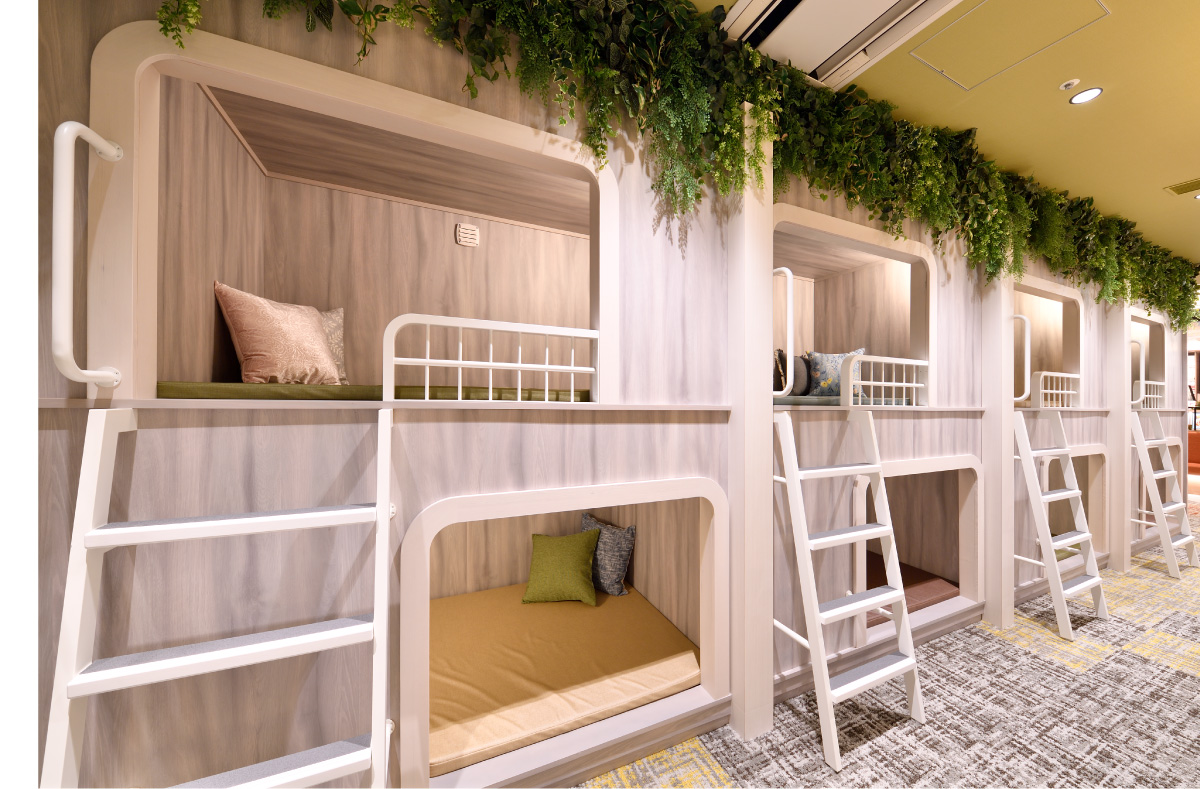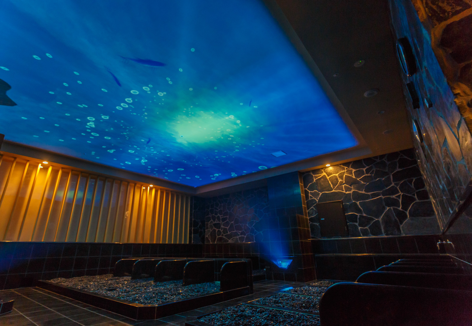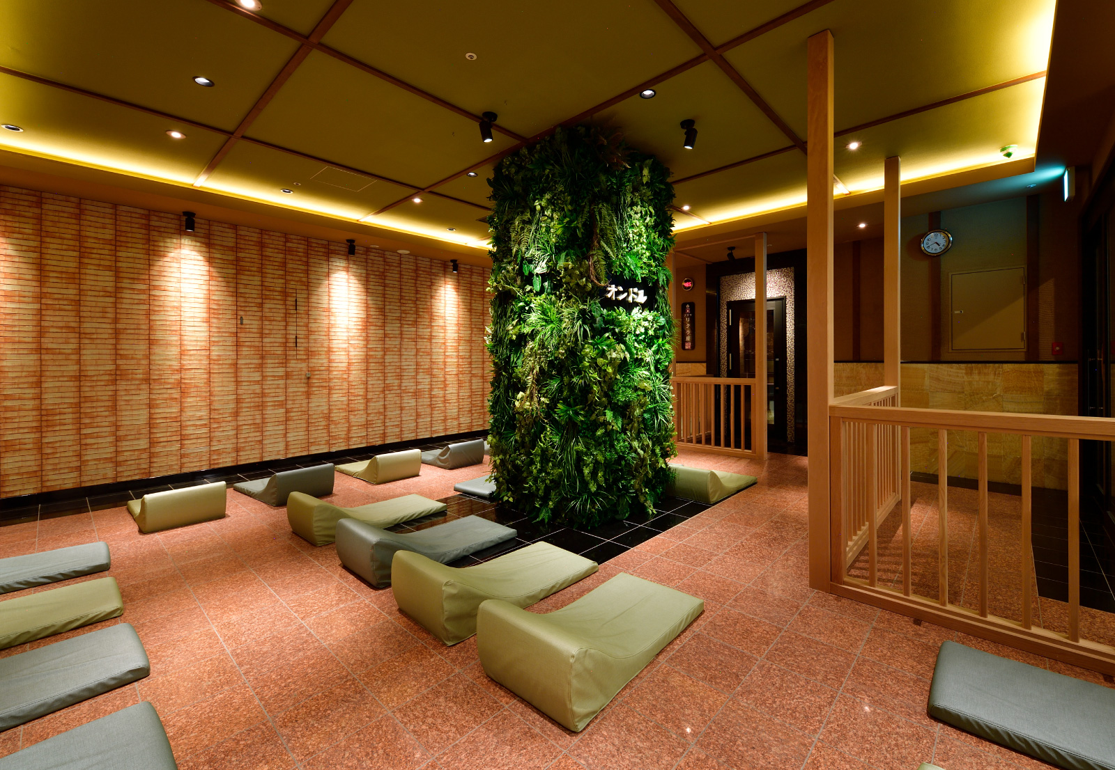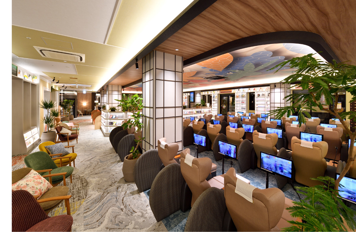岩盤浴エリア、ラウンジエリア、Book libraryエリア、
