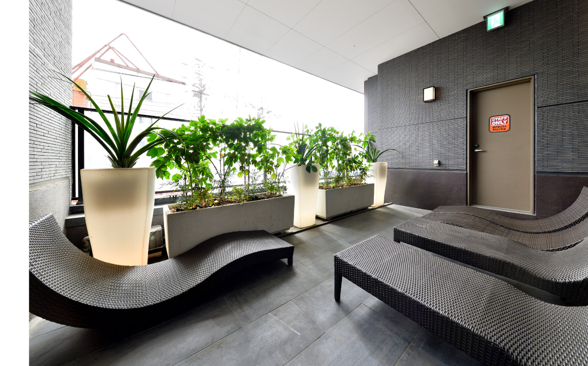 屋外のテラスでは自然の風で