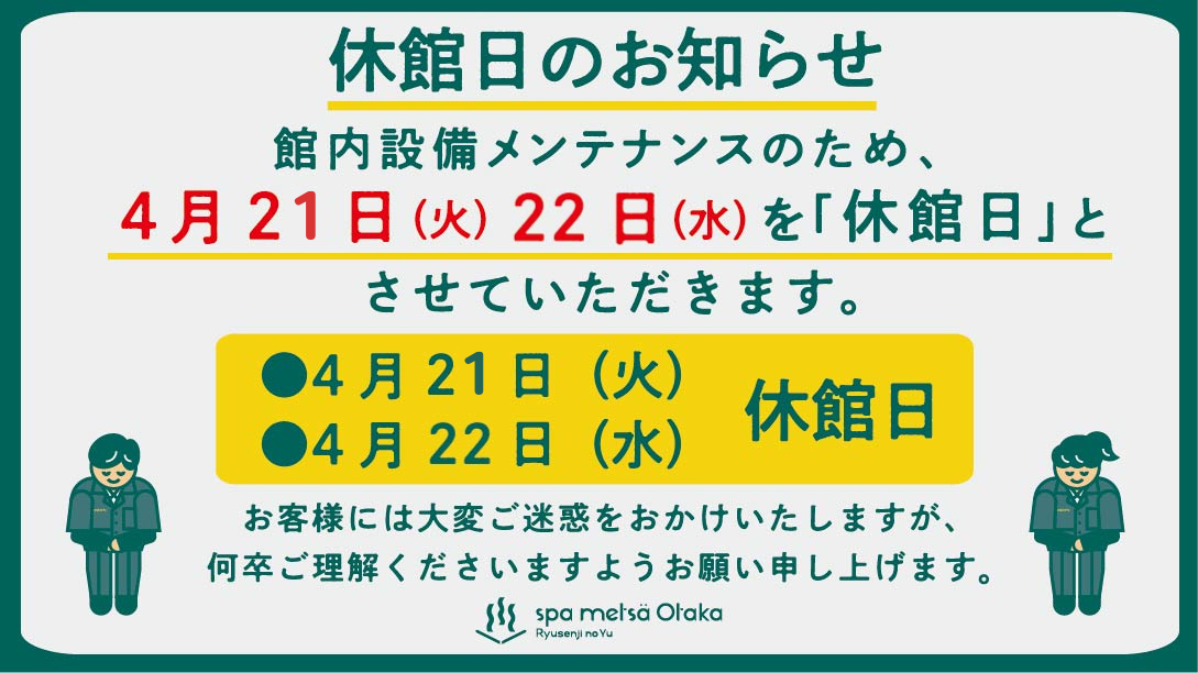 駐車場・ロッカー・岩盤浴室等がいっぱいになった場合は、入場を制限する場合がございます。